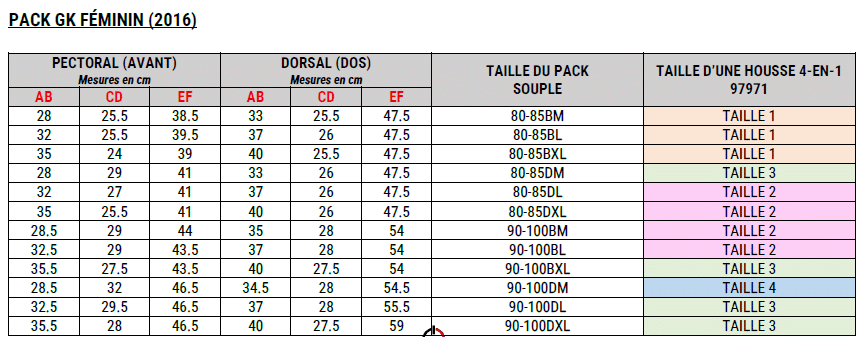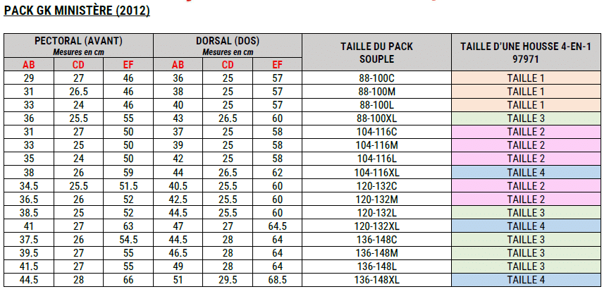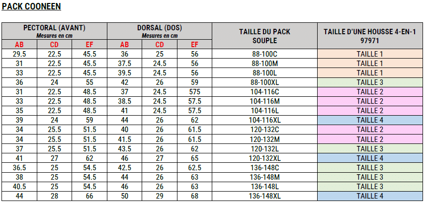 - Tailles : Taille 1 (XS-S-M), Taille 2 (L-XL), Taille 3 (2XL-3XL), Taille 4 (4XL-5XL)