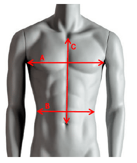 | 97971 | A : Tour de poitrine | B : Tour de taille | C : Hauteur de tronc |