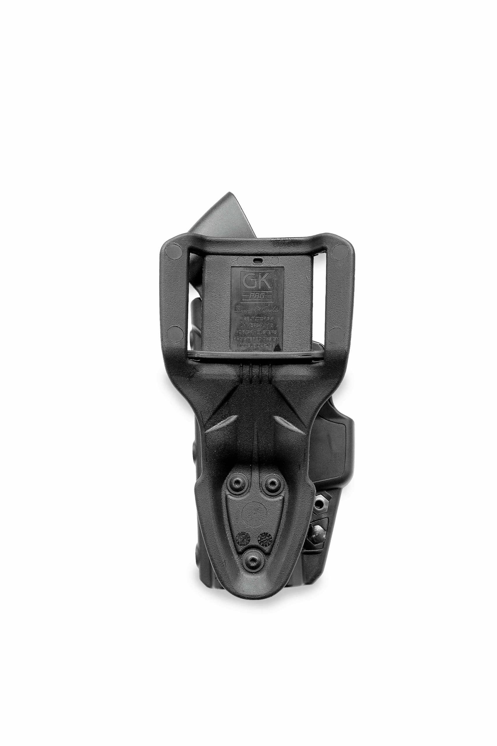 - Système de rétention actif par pont basculant : déverrouillable grâce à un système s’actionnant par une pression naturelle du pouce lors de la prise en main de l’arme