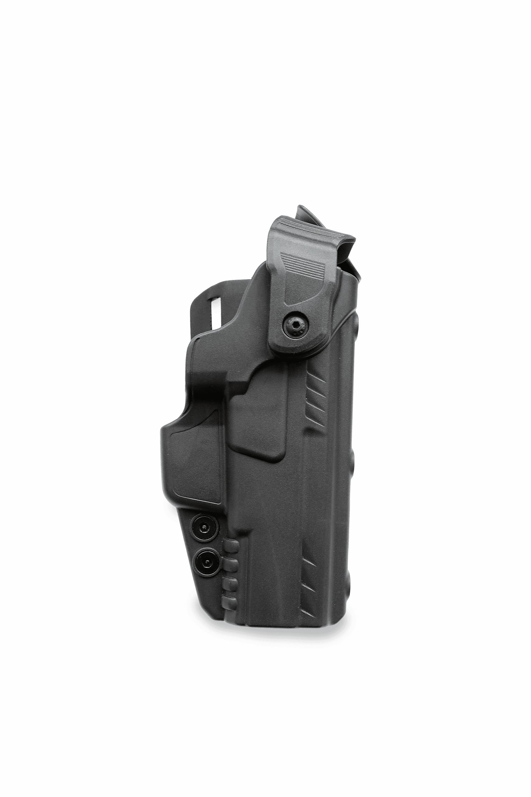 Cet étui injecté simple sécurité, doté d’un système de sécurité par pont basculant, garantit une rétention active de l’arme tout en offrant un dégainage rapide et naturel. Lors de la prise en main, une simple pression du pouce déverrouille le pont basculant, facilitant ainsi la sortie de l’arme.