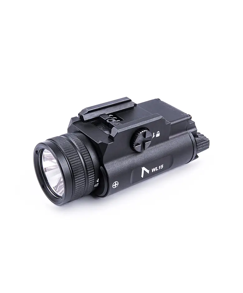 Découvrez une Lampe Tactique pour Arme WL15 compacte, robuste et pensée pour un usage intensif. Avec un poids plume d’environ 73 g (sans batterie) et un format ergonomique de 78,5 x 36,5 x 32,5 mm, elle s’intègre parfaitement sur votre arme sans en altérer l’équilibre. Construite pour durer, elle offre une résistance aux impacts jusqu’à 1 mètre et bénéficie d’une certification d’étanchéité IPX7, garantissant un fonctionnement fiable même sous forte pluie ou en immersion ponctuelle.