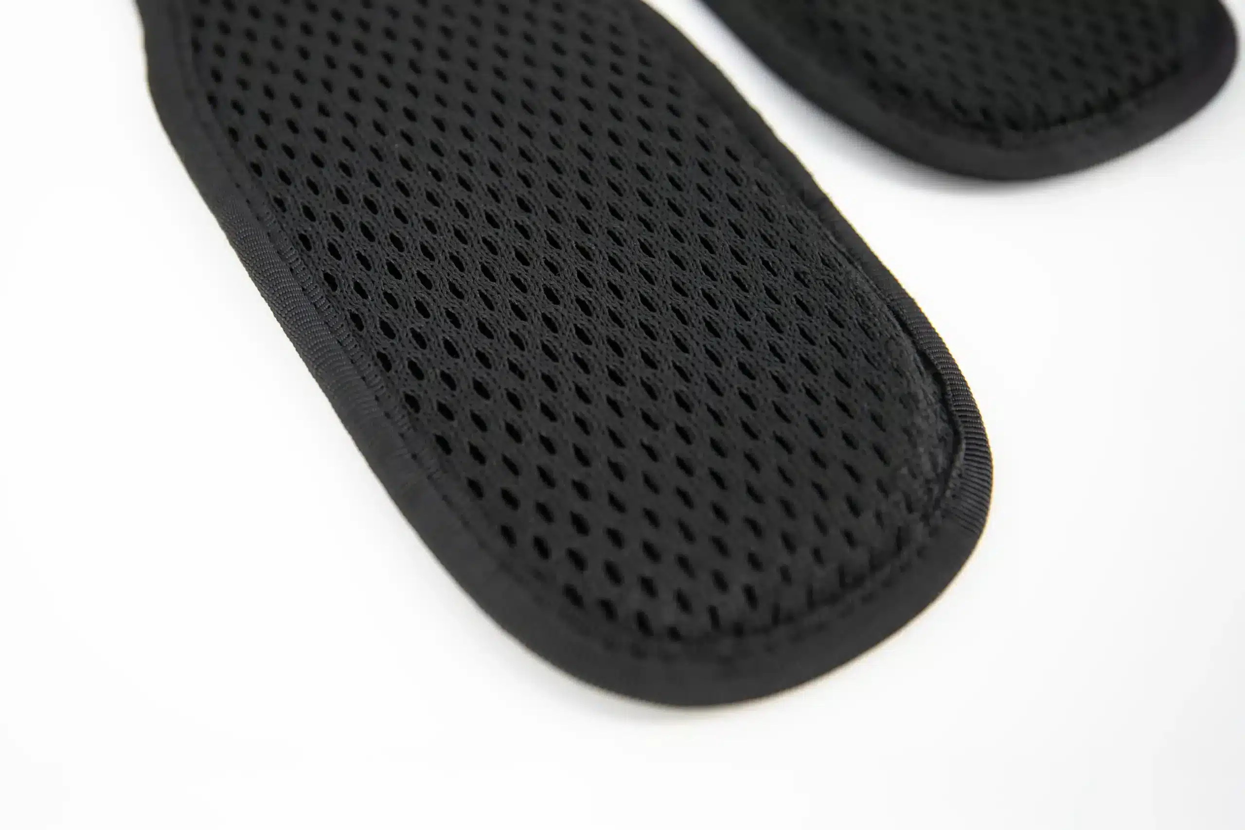 Leur tissu en mesh aéré favorise une excellente circulation de l’air, limitant l’accumulation de chaleur et d’humidité. Les pads se positionnent facilement à l’intérieur de la housse tactique et sont entièrement amovibles grâce à un système de bandes auto-agrippantes crochet, garantissant un maintien fiable tout en permettant un ajustement rapide.