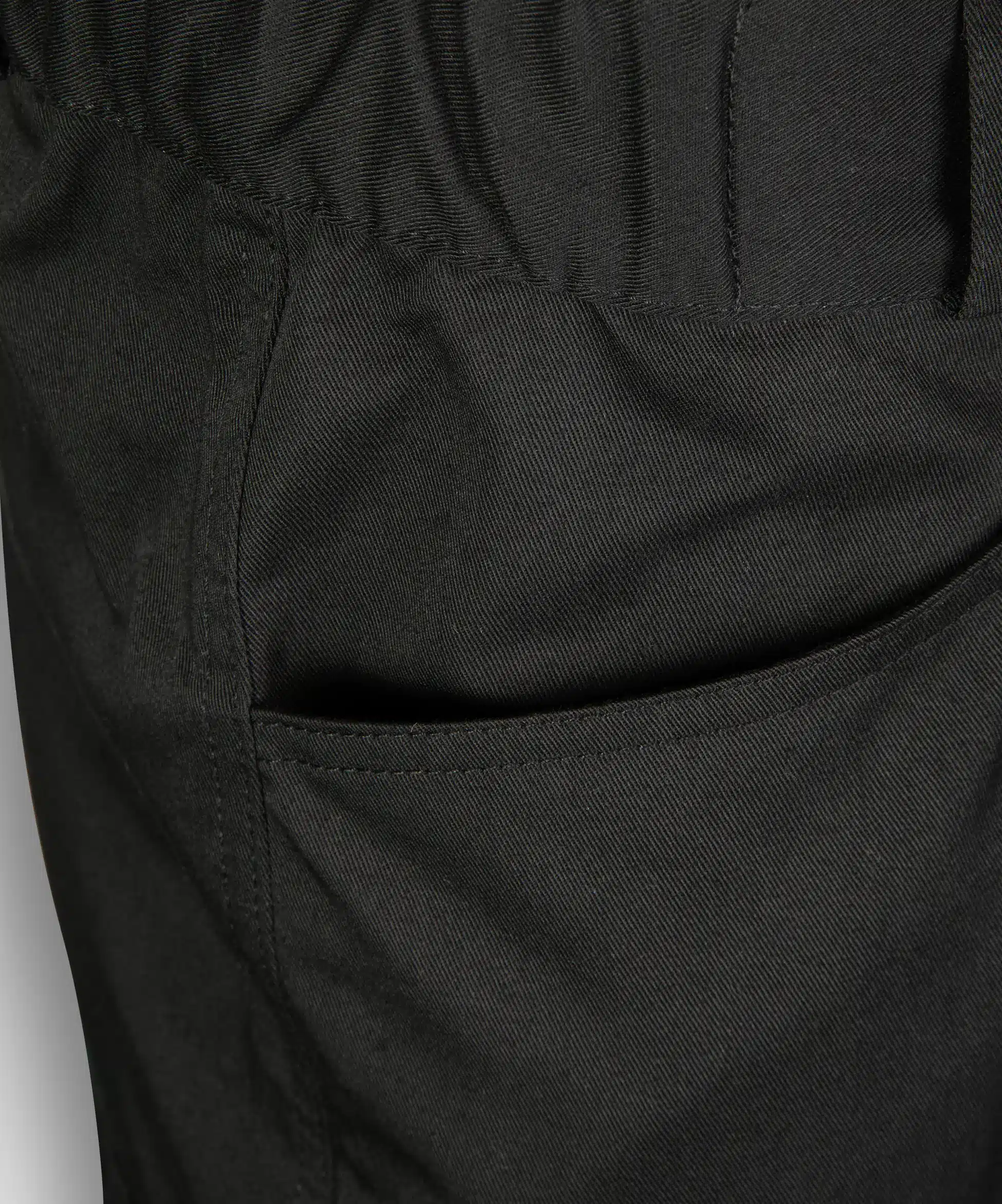Deux poches obliques latérales ouvertes complètent l’ensemble pour un accès rapide aux essentiels. Enfin, le bas de jambes en coupe droite offre une tenue nette et polyvalente, adaptée à différents usages.