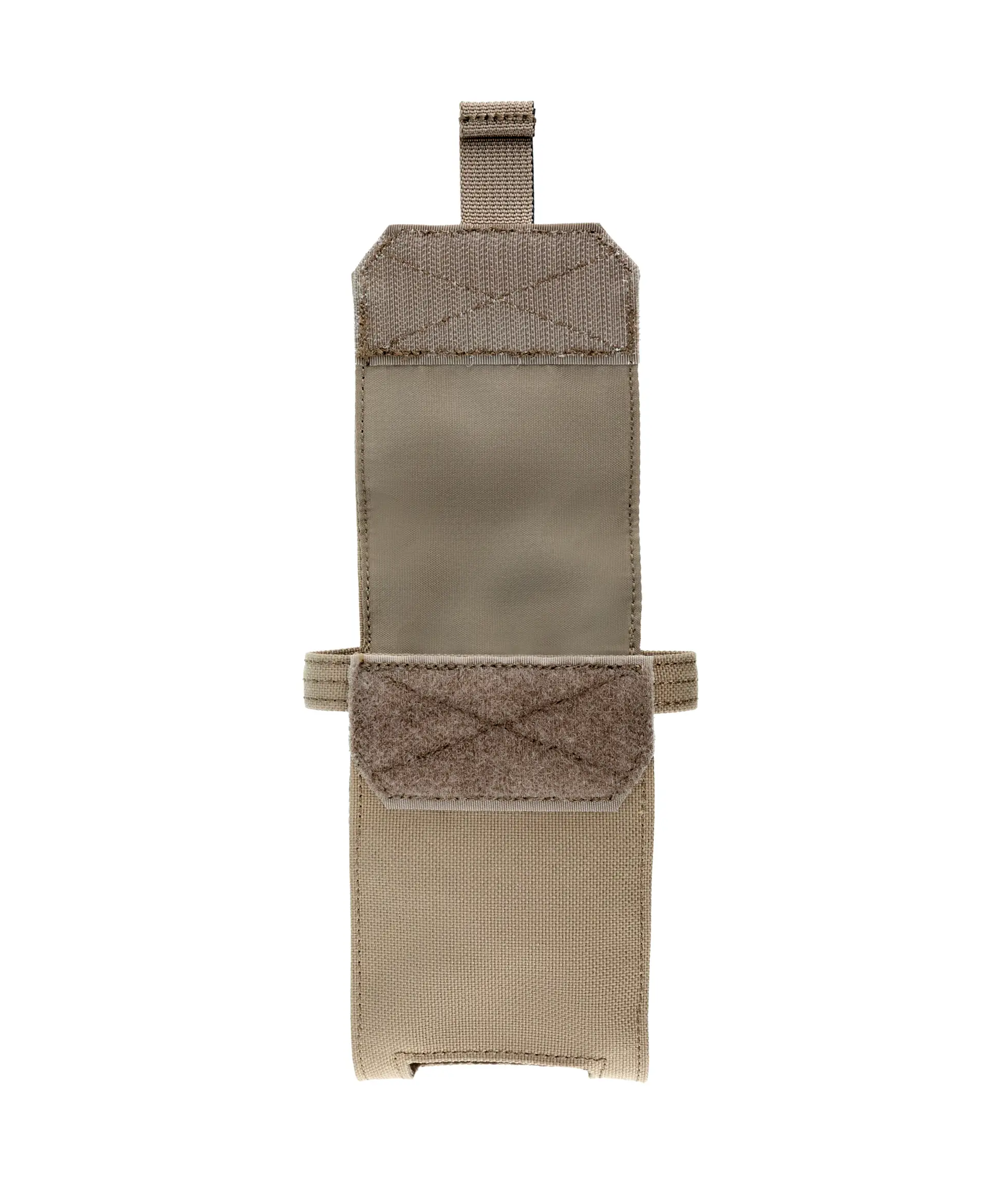 Poche RIF GK coloris Coyote, légère (55 g) et robuste en polyamide haute ténacité. Compatible MOLLE, elle offre un accès rapide aux boutons et connectiques grâce à ses ouvertures latérales et inférieure. Maintien sécurisé par rabat auto-agrippant avec tirette.