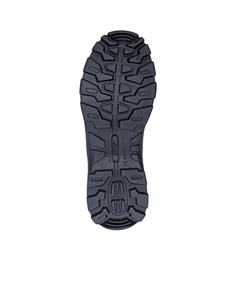 La semelle PU injectée à double densité assure adhérence SRA, résistance aux hydrocarbures et à l’abrasion. L’intérieur amovible en EVA offre un amorti supplémentaire pour plus de confort.