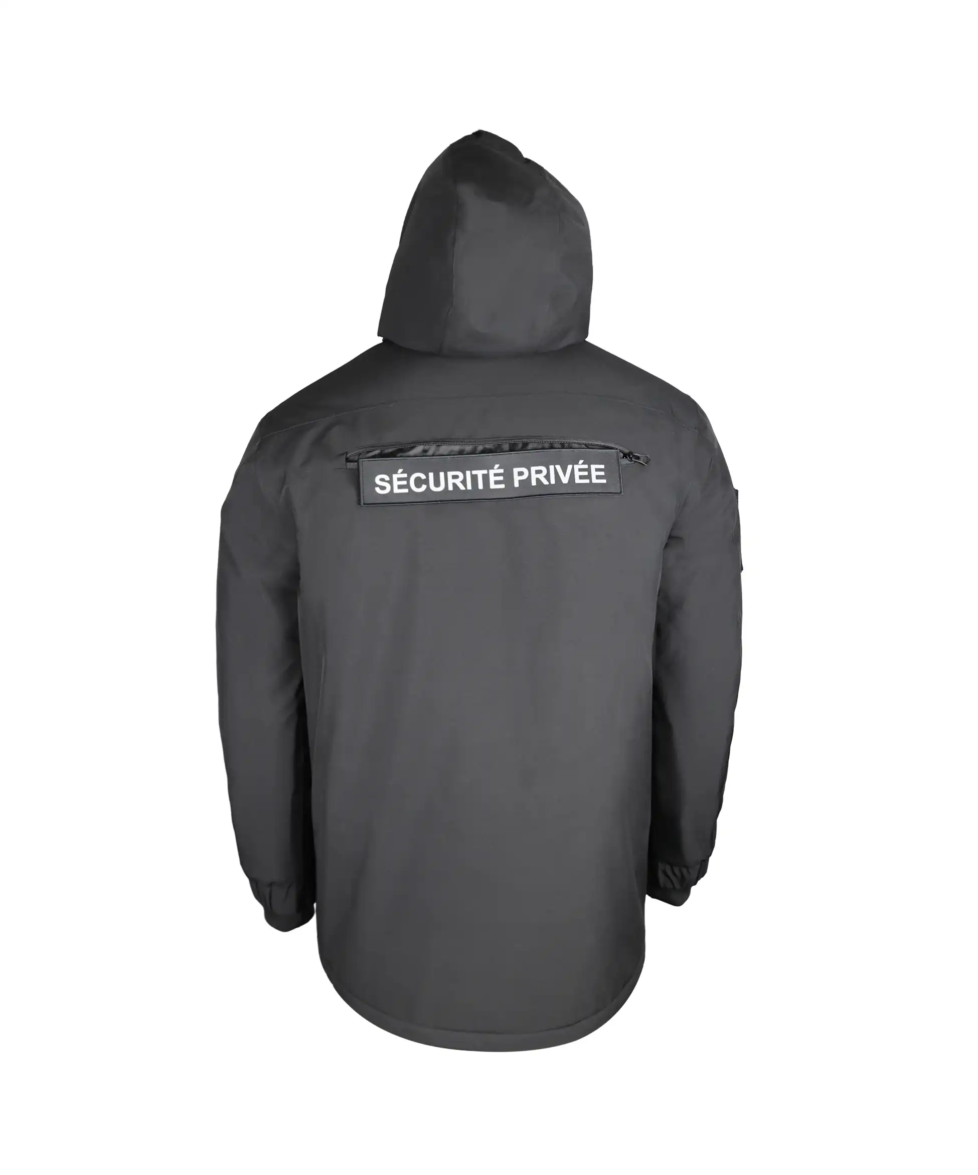 Elle est équipée d’une doublure en polyester et d’un col doublé en polaire pour un confort accru. Son design fonctionnel inclut des badges rétroréfléchissants escamotables “SÉCURITÉ PRIVÉE” à la poitrine et dans le dos, ainsi qu’une boucle pour badge RIO.