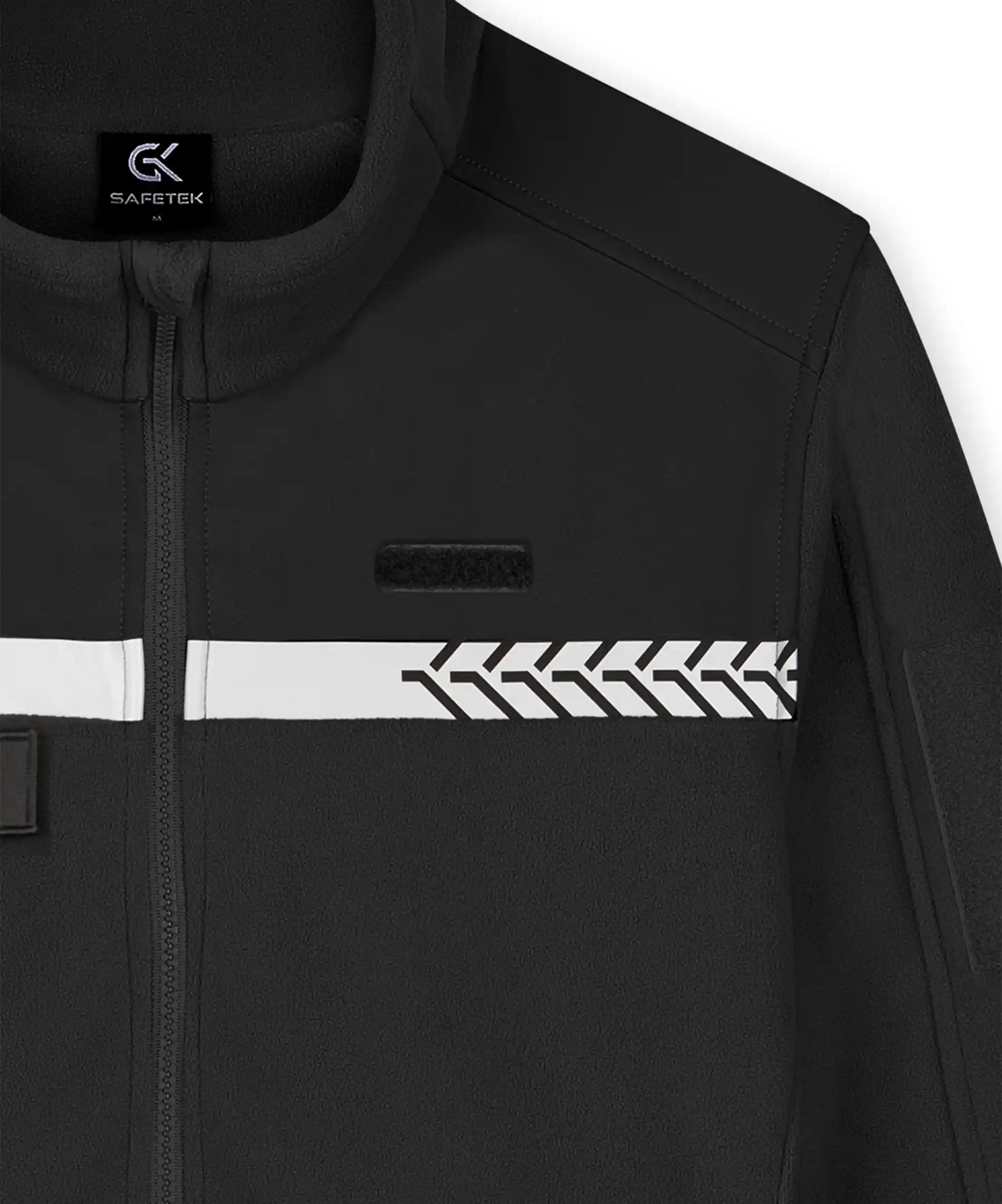 La Polaire Sécurité Privée avec bandes rétroréfléchissantes HV normées EN20471 signée GK SAFETEK ®, spécialement conçue pour assurer confort et visibilité optimale lors des missions de sécurité.