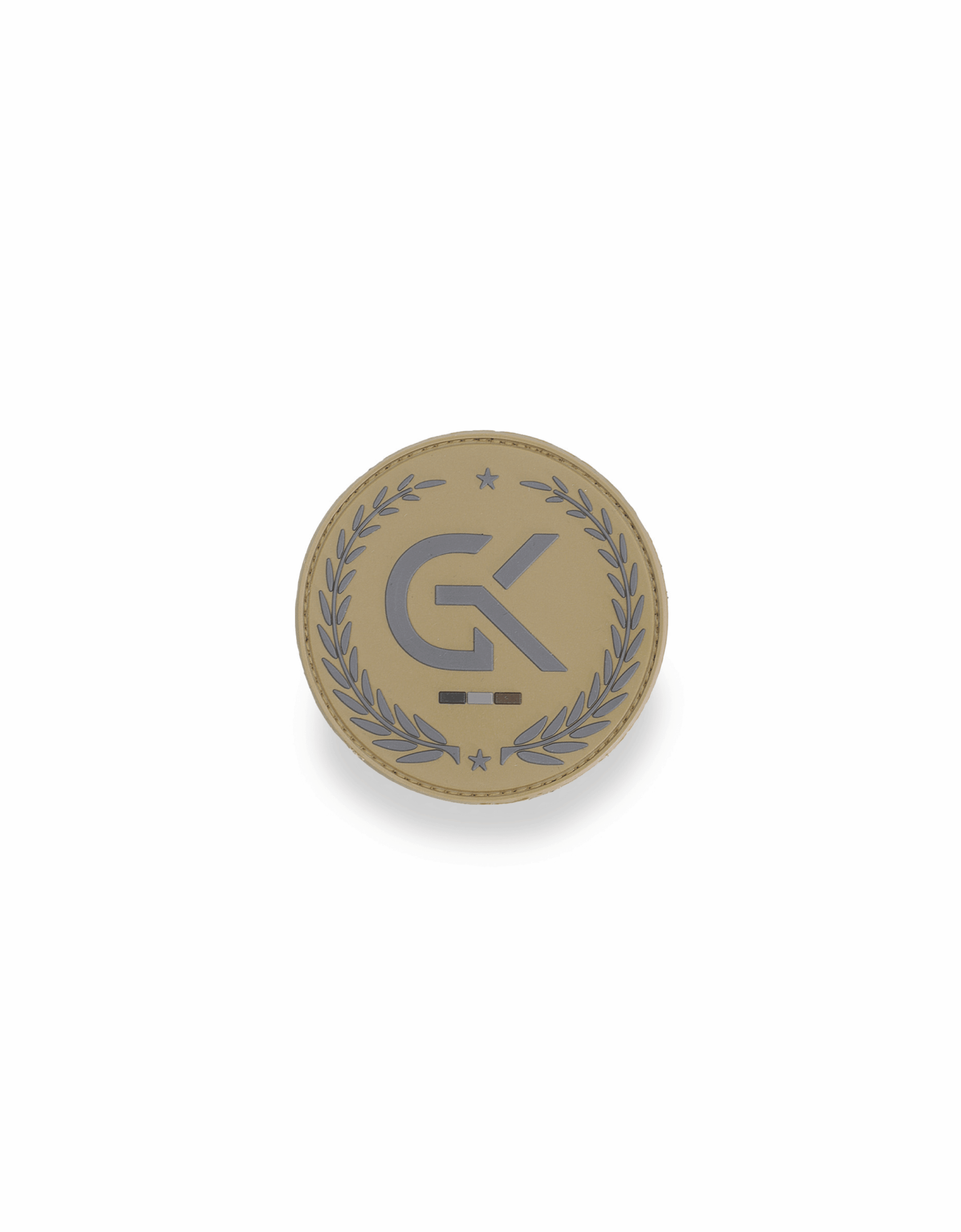 Choisissez cet écusson rond basse visibilité GK en gomme de 80 mm de diamètre, disponible en coyote, vert ou noir, pour personnaliser facilement vos équipements.