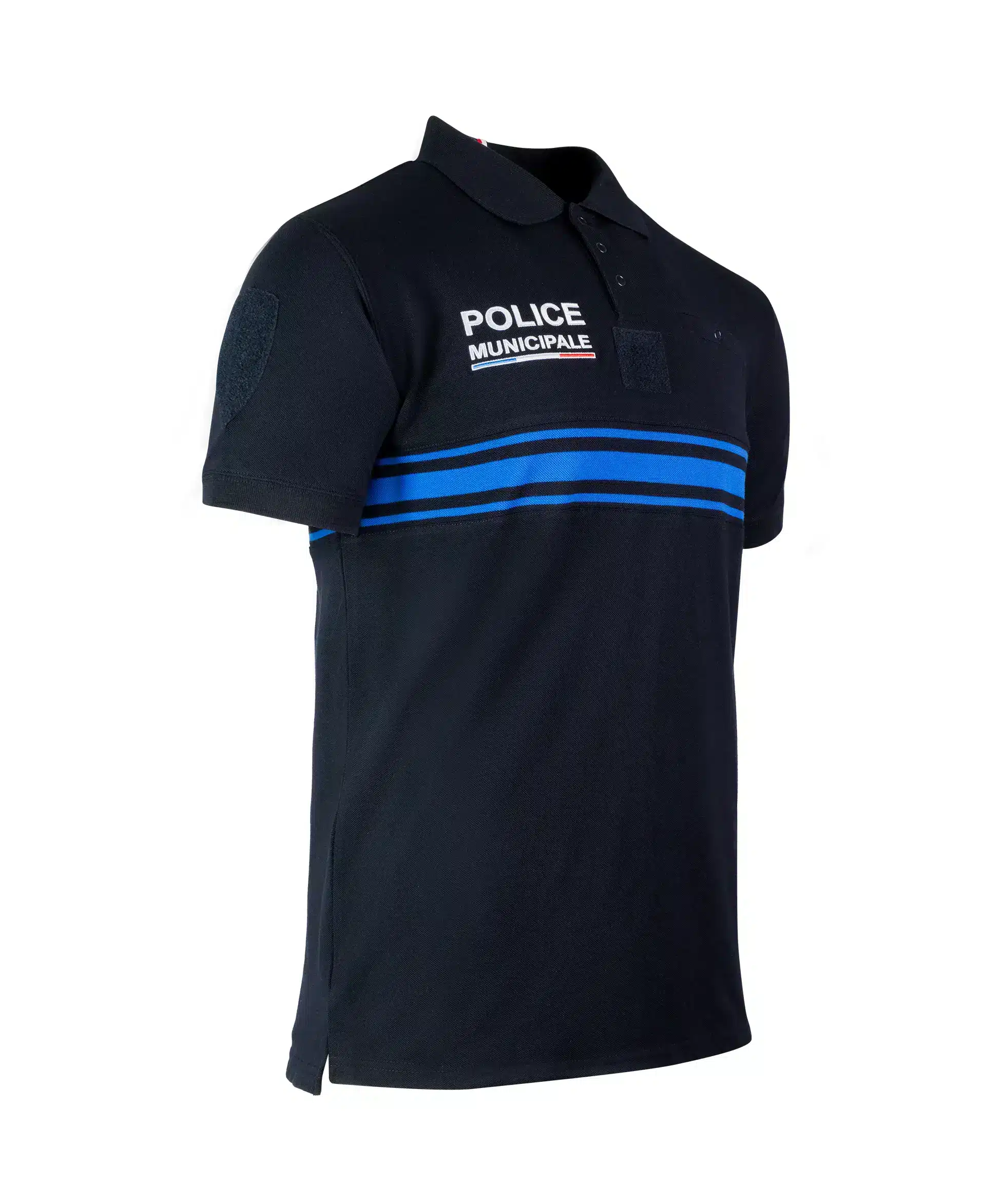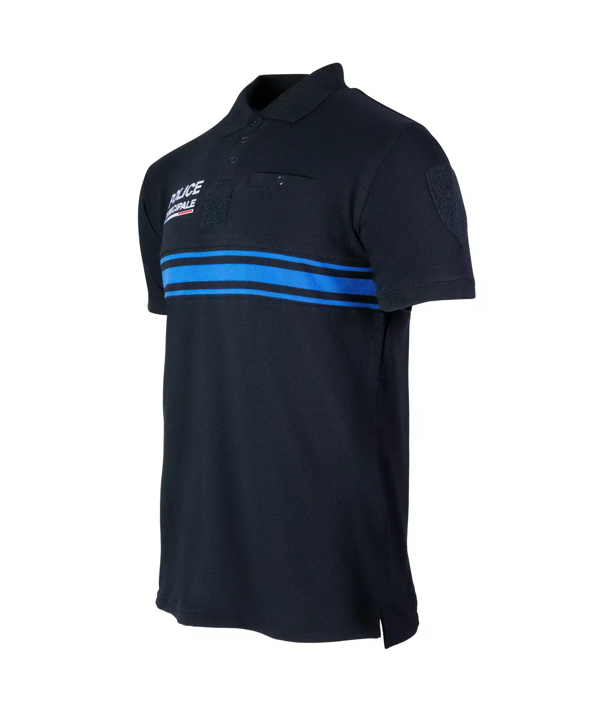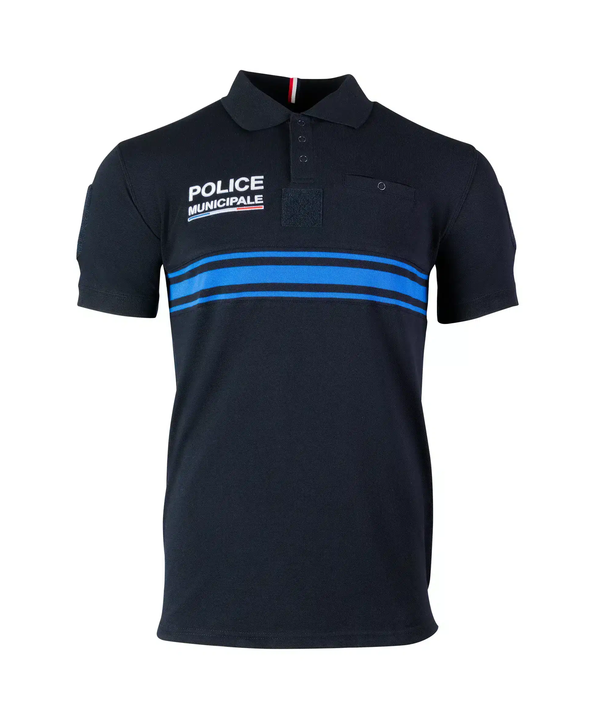 Par ailleurs, les broderies POLICE MUNICIPALE sont présentes sur la poitrine et au dos. Elles garantissent une identification claire et professionnelle. La bande horizontale à l’avant et à l’arrière renforce cette visibilité.