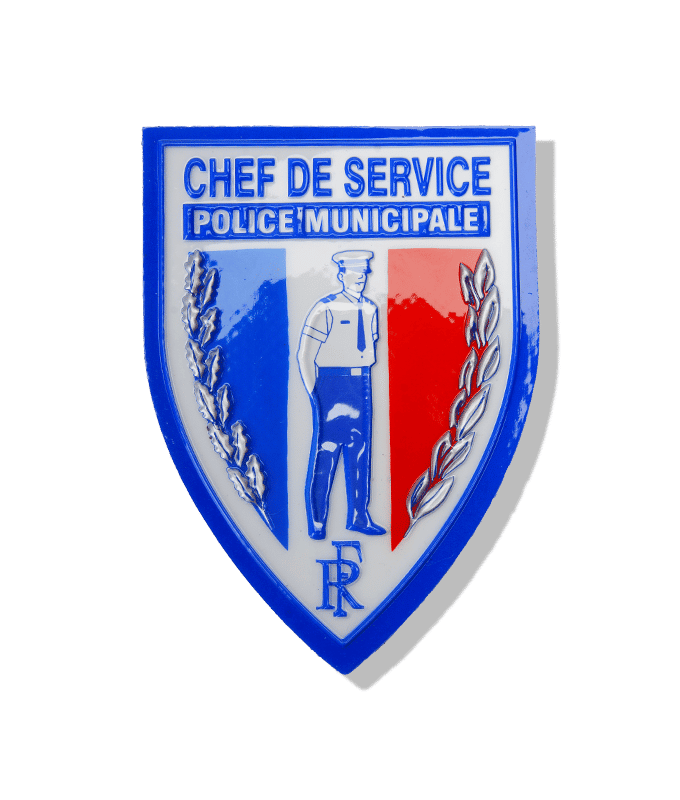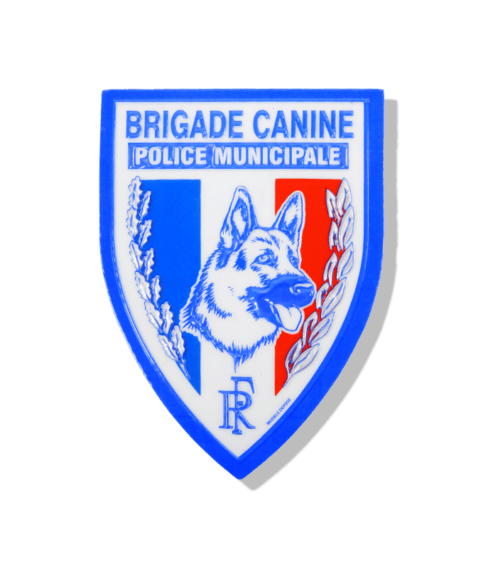 Écusson plastifié en fixation vecro pour les brigades canines, équestres, nautique et de nuit. Aussi disponible en version chef de service.
