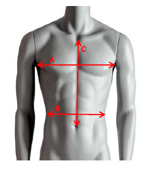 | 97972M | A : Tour de poitrine | B : Tour de taille | C : Hauteur de tronc |