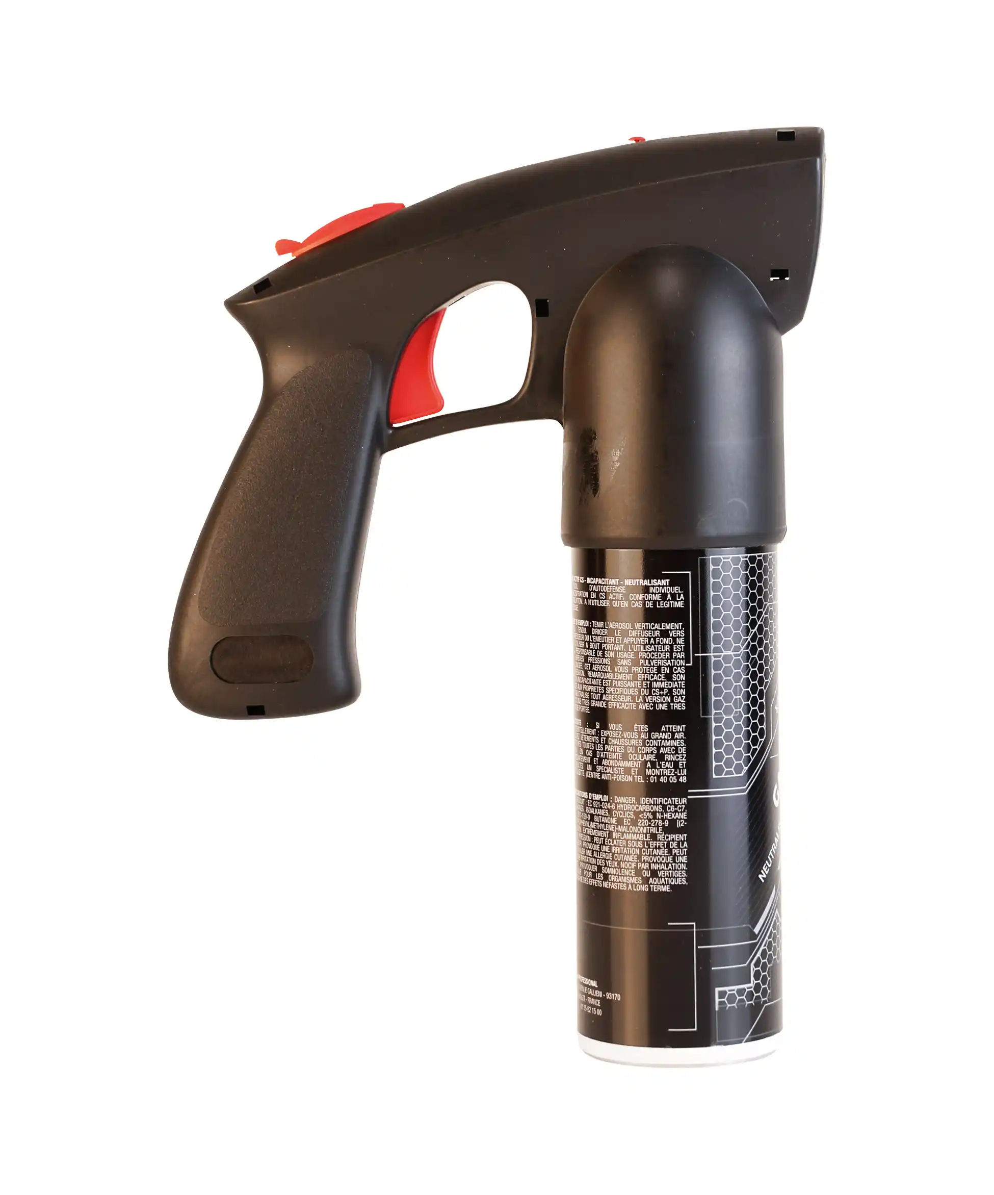 Son diffuseur longue portée assure une projection précise et performante. Pour une protection maximale, l’aérosol intègre un capot anti-arrachement, solidement fixé au boîtier et solidaire de la poignée, garantissant une utilisation fiable sur le terrain.