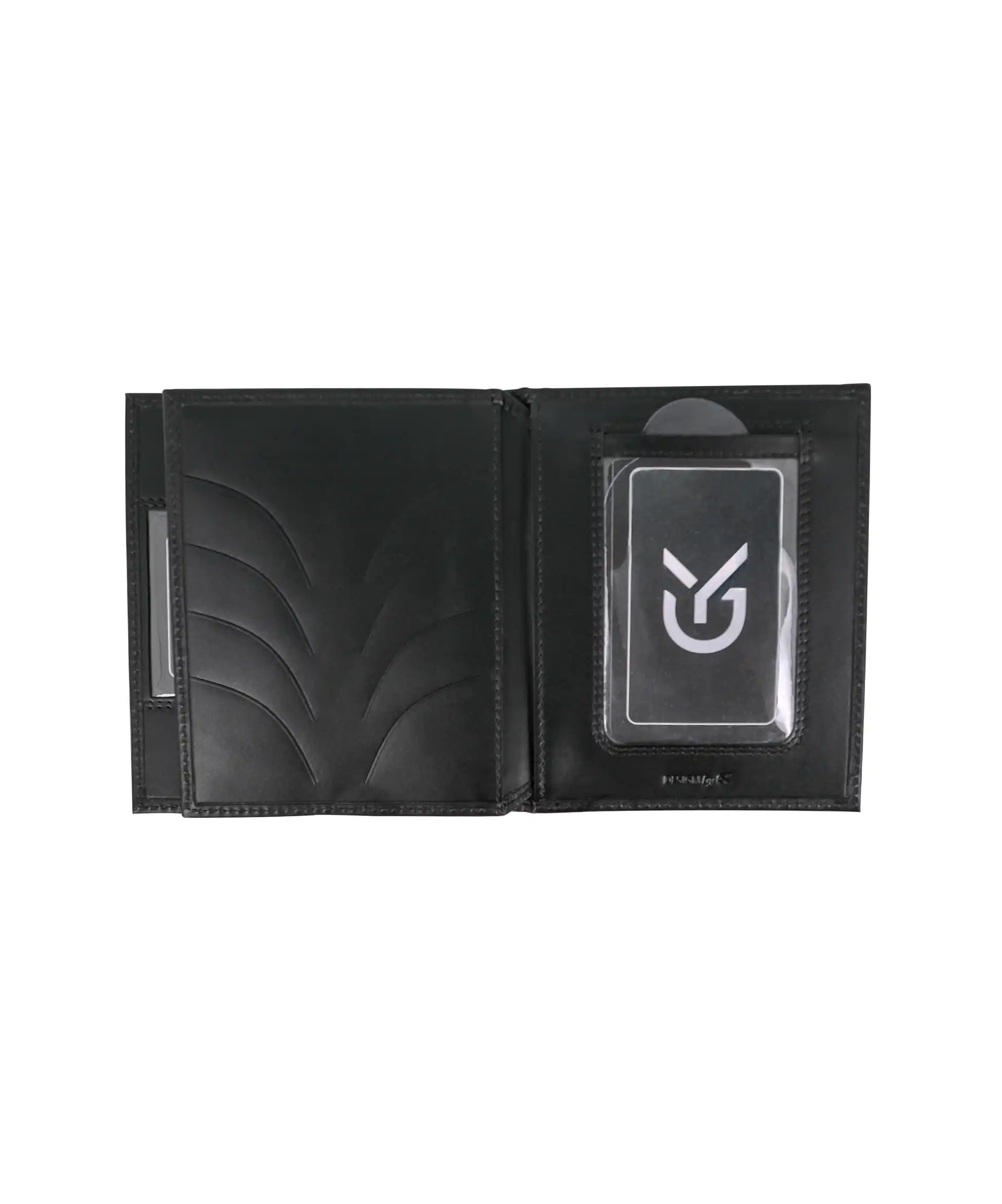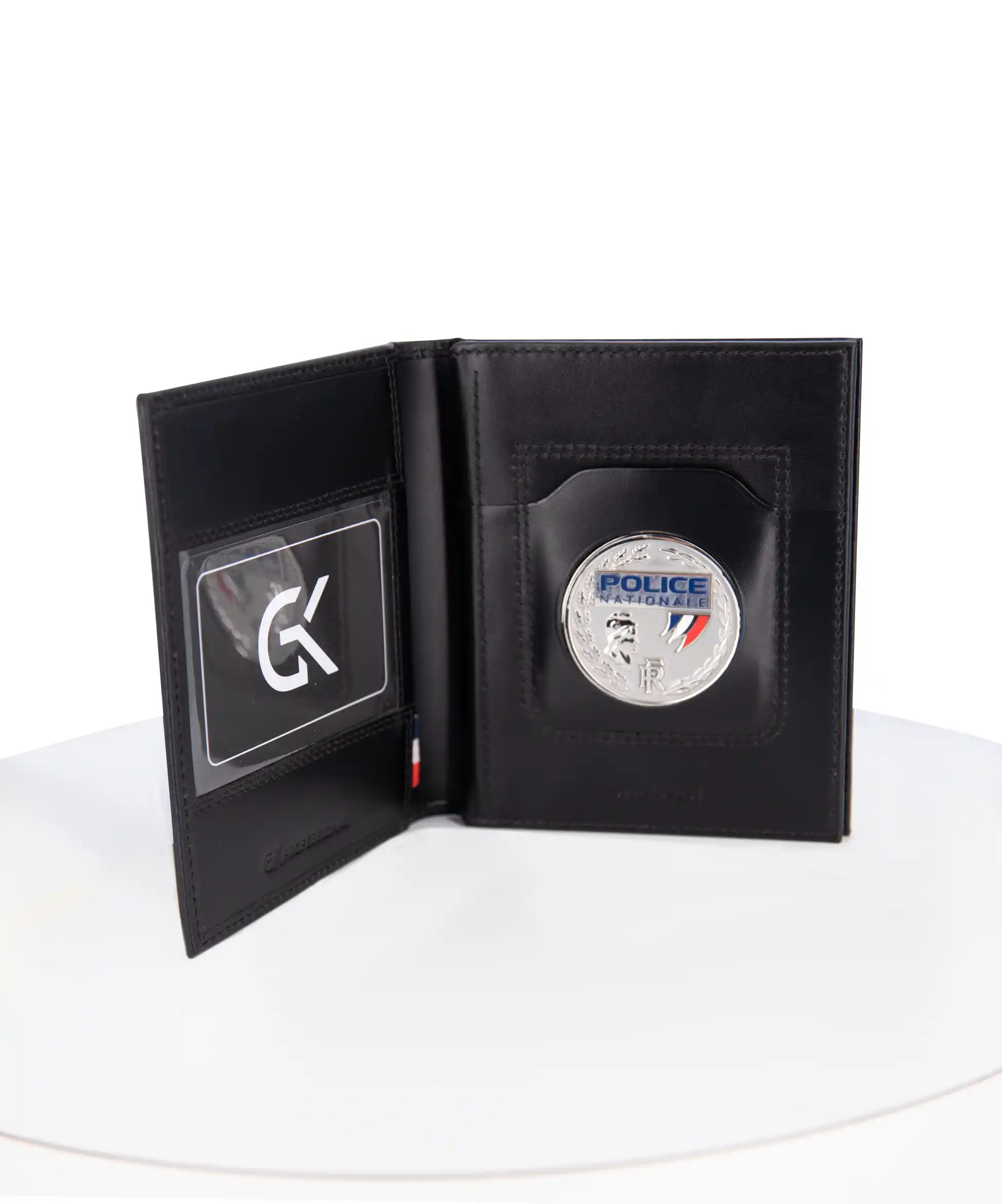 Ce Porte-carte Horizontal 3 Volets en cuir véritable à 3 volets offre des emplacements pour cartes et médailles, alliant élégance et fonctionnalité pour un usage professionnel.