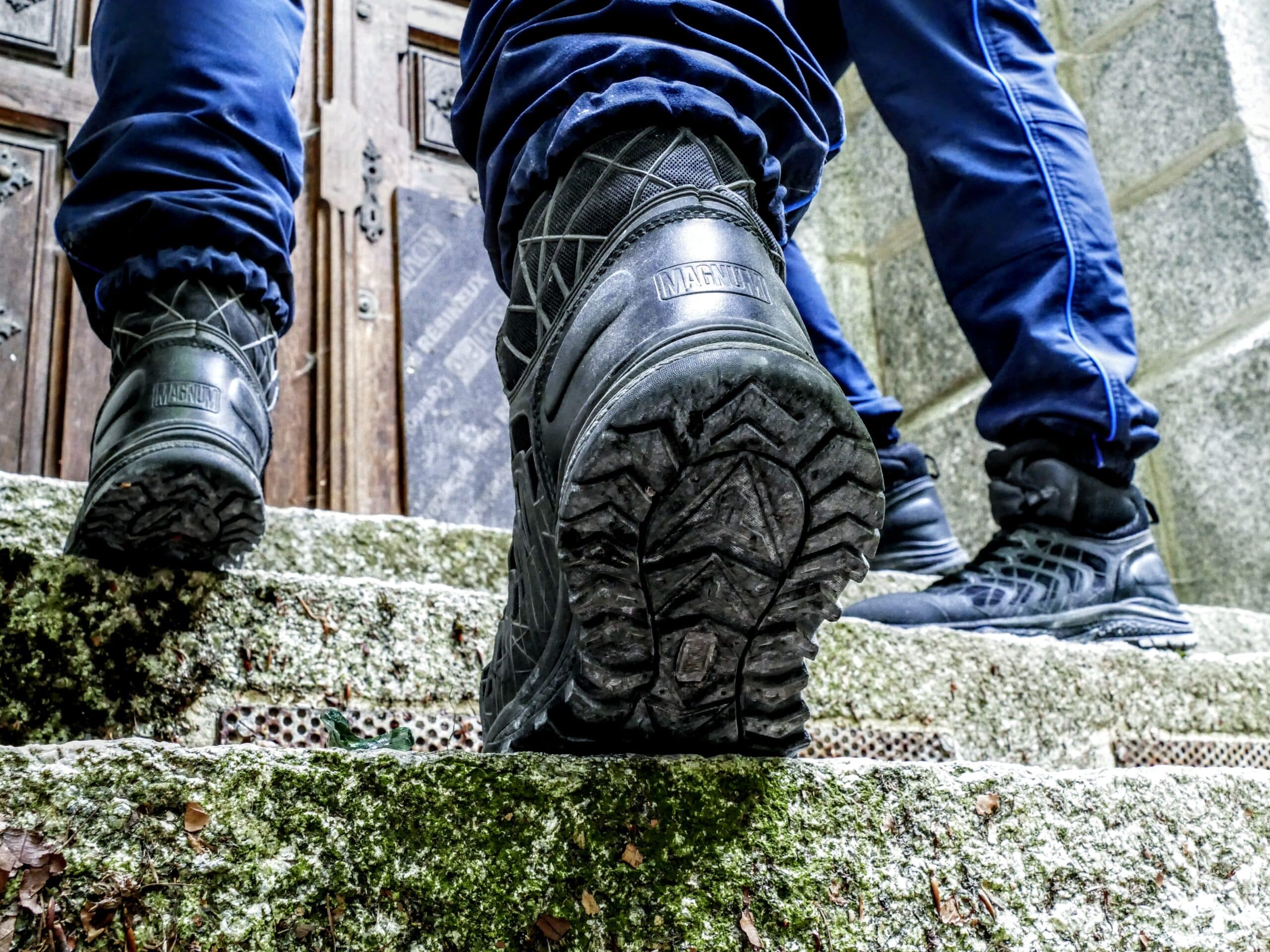 - La semelle extérieure ou d’usure crantée en caoutchouc ou polyuréthane. Son rôle : l’accroche, la stabilité et l’absorption des chocs. Elle permet une isolation thermique optimale et doit être antidérapante. C’est à ce niveau que les premières marques d’usure apparaissent. Avec les chaussures Magnum, vous êtes assuré de choisir la qualité. Tous les modèles sont munis d’une semelle extérieur en caoutchouc carbone MICHELIN® cranté.